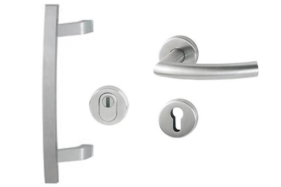 Ob rustikal oder hochmodern - nachfolgend haben wir eine exklusive Auswahl an Haustürgarnituren zusammengestellt. Es stehen Ihnen die Metalloberflächen Aluminium, Edelstahl, Bronze und Messing zur Verfügung.