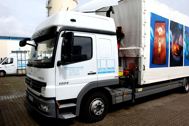 Unser eigener Fuhrpark liefert jedes Fenster, jede Haustür sowie jede Treppe entweder zum Lager des Fachhändlers oder direkt auf die Baustelle – so sind die Elemente sofort einbaubereit.